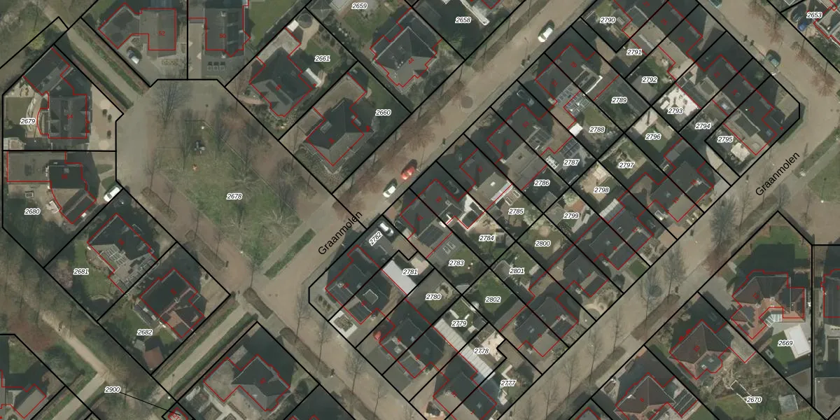 Het perceel waarop Graanmolen 41 staat heeft een oppervlakte van 246 m². Dit is een middelgroot perceel. De perceeloppervlakte wordt geregistreerd door het Kadaster. Gedetailleerde informatie over de maten van dit perceel kunt u vinden in het rapport Kadastrale kaart met maatvoering van Graanmolen 41.