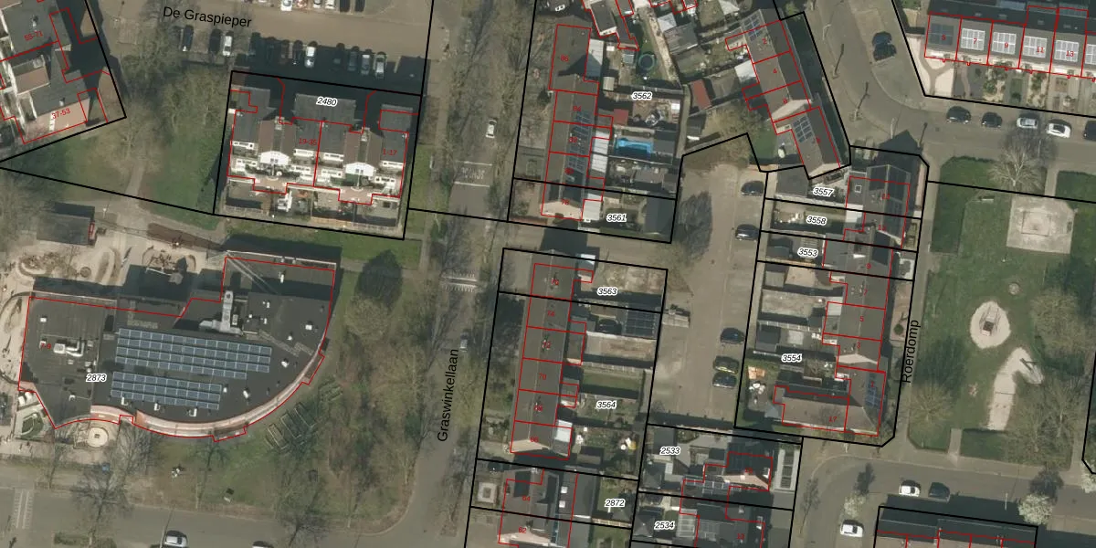 Graswinkellaan 76 is gelegen op kadastraal perceel WEE01F3563. Deze kadastrale aanduiding is uniek en wordt gebruikt door het Kadaster om eigendomsrechten en andere zakelijke rechten vast te leggen. Het perceel maakt onderdeel uit van de kadastrale gemeente Weert.