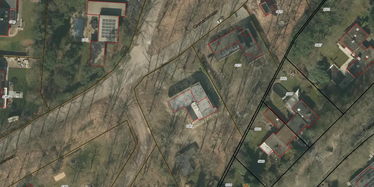 Grenadierlaan 12 is gelegen op kadastraal perceel WEE01P6397. Deze kadastrale aanduiding is uniek en wordt gebruikt door het Kadaster om eigendomsrechten en andere zakelijke rechten vast te leggen. Het perceel maakt onderdeel uit van de kadastrale gemeente Weert.
