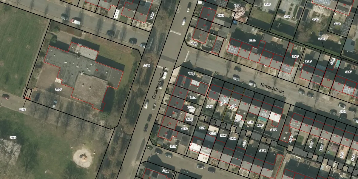 Gebruik de zoekbalk of klik op een perceel voor informatie over de adressen binnen dit perceel.