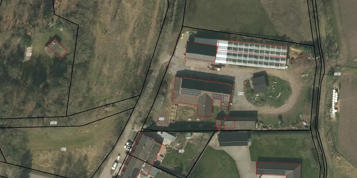 Het perceel waarop Grotesteeg 1 staat heeft een oppervlakte van 4576 m². Dit is een zeer groot perceel. De perceeloppervlakte wordt geregistreerd door het Kadaster. Gedetailleerde informatie over de maten van dit perceel kunt u vinden in het rapport Kadastrale kaart met maatvoering van Grotesteeg 1.