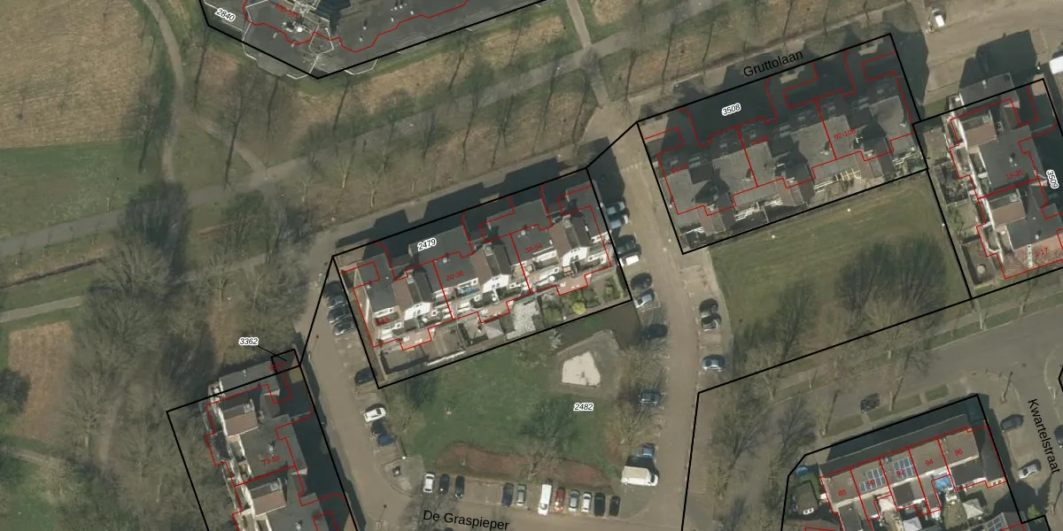 Gruttolaan 46 is gelegen op kadastraal perceel WEE01F2479. Deze kadastrale aanduiding is uniek en wordt gebruikt door het Kadaster om eigendomsrechten en andere zakelijke rechten vast te leggen. Het perceel maakt onderdeel uit van de kadastrale gemeente Weert.