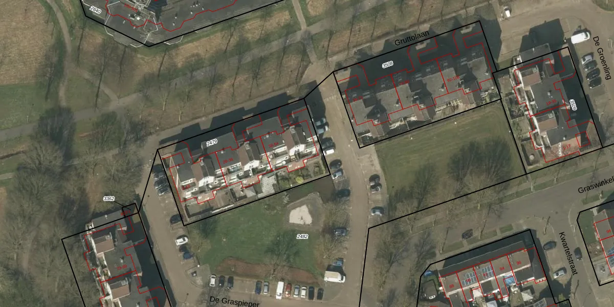 Gruttolaan 54 is gelegen op kadastraal perceel WEE01F2479. Deze kadastrale aanduiding is uniek en wordt gebruikt door het Kadaster om eigendomsrechten en andere zakelijke rechten vast te leggen. Het perceel maakt onderdeel uit van de kadastrale gemeente Weert.