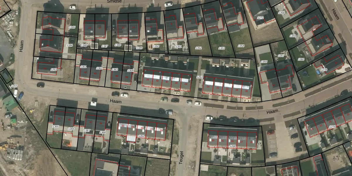 Het perceel waarop Haam 28 staat heeft een oppervlakte van 1625 m². Dit is een zeer groot perceel. De perceeloppervlakte wordt geregistreerd door het Kadaster. Gedetailleerde informatie over de maten van dit perceel kunt u vinden in het rapport Kadastrale kaart met maatvoering van Haam 28.