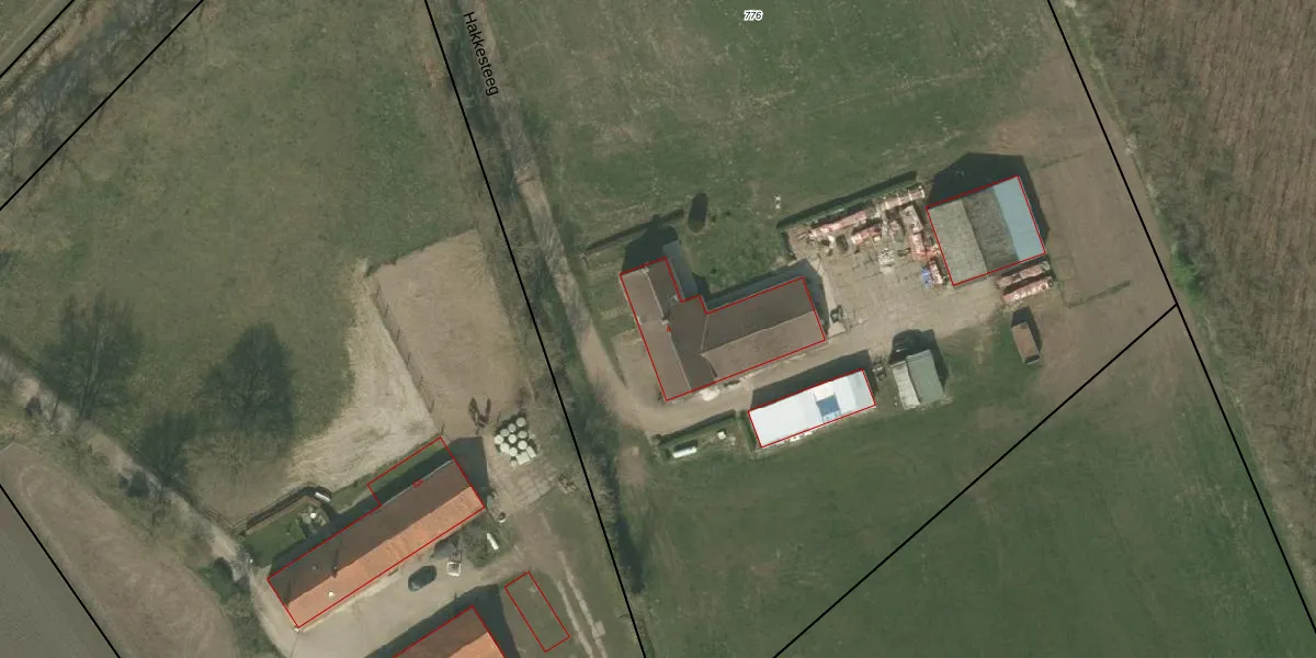 Het perceel waarop Hakkesteeg 4 staat heeft een oppervlakte van 1,3 ha. Dit is een zeer groot perceel. De perceeloppervlakte wordt geregistreerd door het Kadaster. Gedetailleerde informatie over de maten van dit perceel kunt u vinden in het rapport Kadastrale kaart met maatvoering van Hakkesteeg 4.