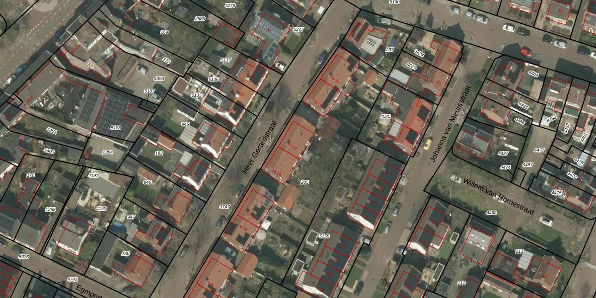 Het perceel waarop Heer Gerardstraat 22 staat heeft een oppervlakte van 2385 m². Dit is een zeer groot perceel. De perceeloppervlakte wordt geregistreerd door het Kadaster. Gedetailleerde informatie over de maten van dit perceel kunt u vinden in het rapport Kadastrale kaart met maatvoering van Heer Gerardstraat 22.