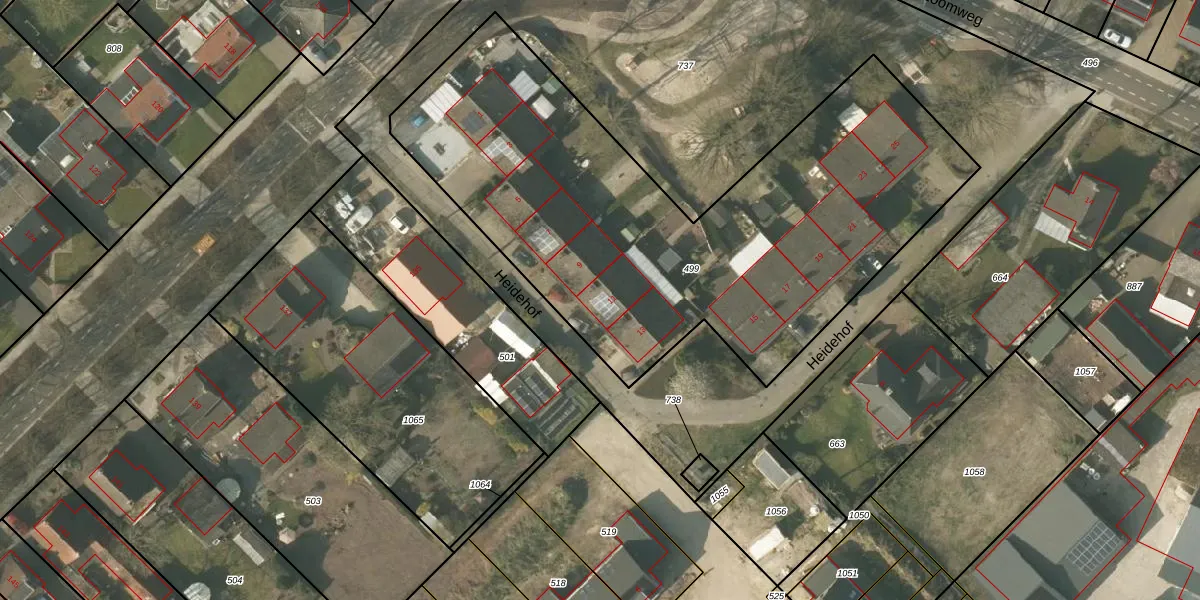 Het perceel waarop Heidehof 11 staat heeft een oppervlakte van 2870 m². Dit is een zeer groot perceel. De perceeloppervlakte wordt geregistreerd door het Kadaster. Gedetailleerde informatie over de maten van dit perceel kunt u vinden in het rapport Kadastrale kaart met maatvoering van Heidehof 11.