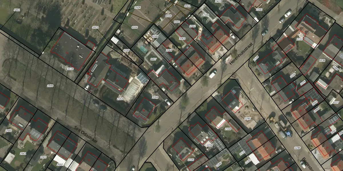 Herenhuisstraat 14 is gelegen op kadastraal perceel WEE01N6407. Deze kadastrale aanduiding is uniek en wordt gebruikt door het Kadaster om eigendomsrechten en andere zakelijke rechten vast te leggen. Het perceel maakt onderdeel uit van de kadastrale gemeente Weert.