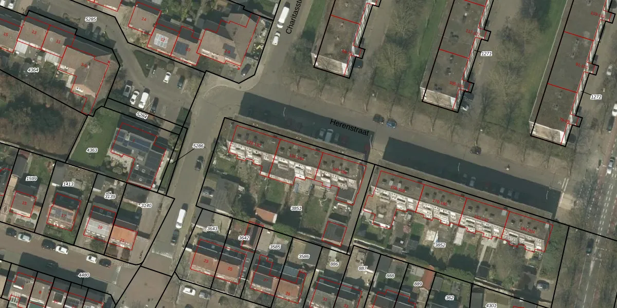 Het perceel waarop Herenstraat 136 staat heeft een oppervlakte van 1540 m². Dit is een zeer groot perceel. De perceeloppervlakte wordt geregistreerd door het Kadaster. Gedetailleerde informatie over de maten van dit perceel kunt u vinden in het rapport Kadastrale kaart met maatvoering van Herenstraat 136.