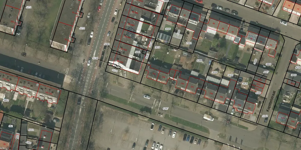 Het perceel waarop Herenstraat 141 staat heeft een oppervlakte van 2336 m². Dit is een zeer groot perceel. De perceeloppervlakte wordt geregistreerd door het Kadaster. Gedetailleerde informatie over de maten van dit perceel kunt u vinden in het rapport Kadastrale kaart met maatvoering van Herenstraat 141.