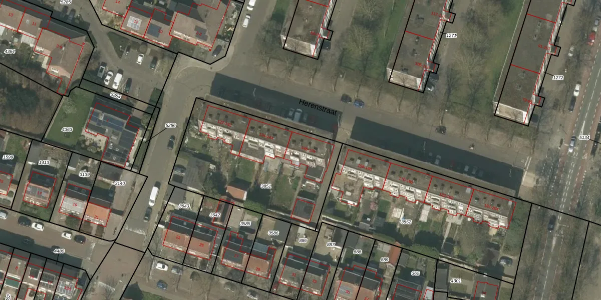 Herenstraat 150 is gelegen op kadastraal perceel WEE01S3851. Deze kadastrale aanduiding is uniek en wordt gebruikt door het Kadaster om eigendomsrechten en andere zakelijke rechten vast te leggen. Het perceel maakt onderdeel uit van de kadastrale gemeente Weert.