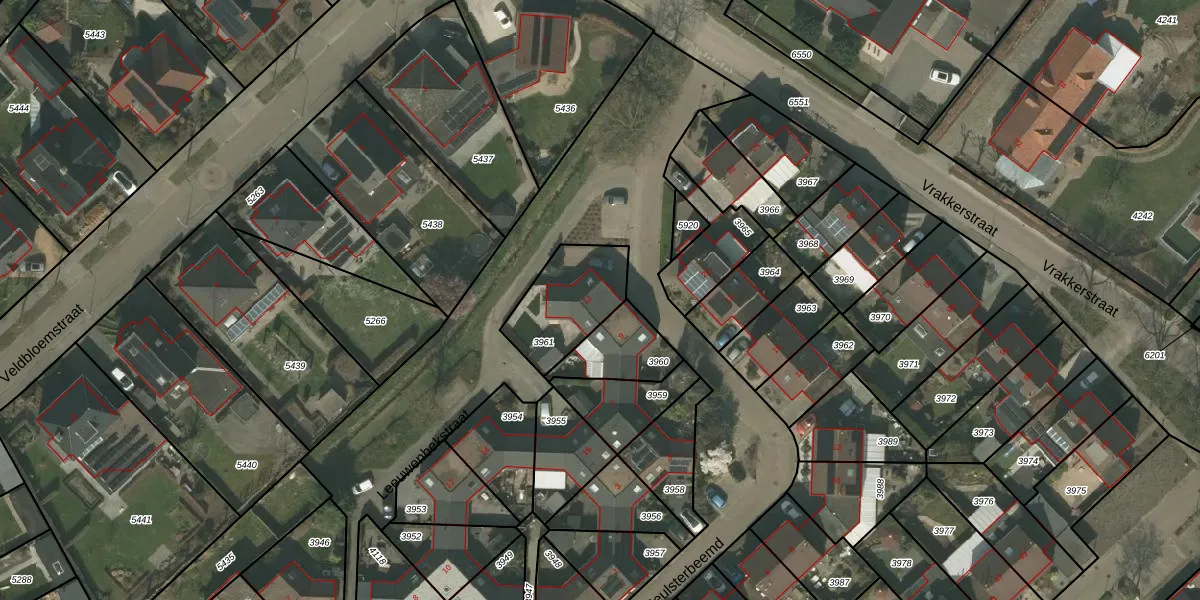 Gebruik de zoekbalk of klik op een perceel voor informatie over de adressen binnen dit perceel.