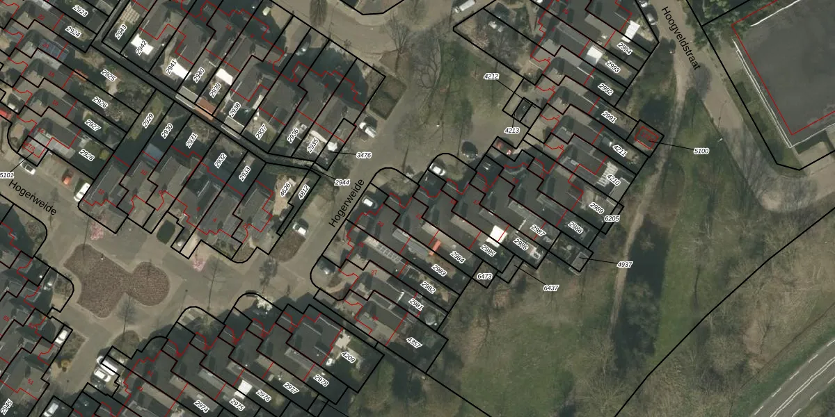 Hogerweide 21 is gelegen op kadastraal perceel WEE01N2984. Deze kadastrale aanduiding is uniek en wordt gebruikt door het Kadaster om eigendomsrechten en andere zakelijke rechten vast te leggen. Het perceel maakt onderdeel uit van de kadastrale gemeente Weert.