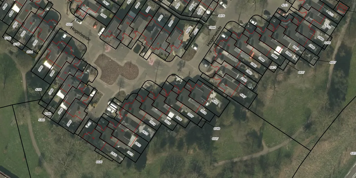 Gebruik de zoekbalk of klik op een perceel voor informatie over de adressen binnen dit perceel.