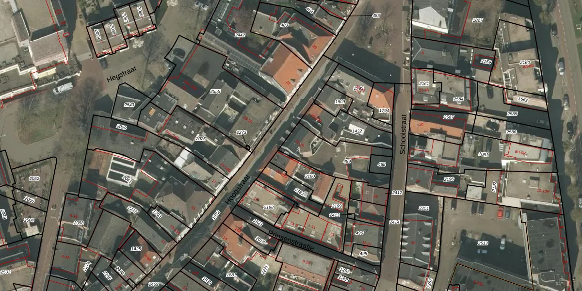 Het perceel waarop Hoogstraat 22 staat heeft een oppervlakte van 380 m². Dit is een groot perceel. De perceeloppervlakte wordt geregistreerd door het Kadaster. Gedetailleerde informatie over de maten van dit perceel kunt u vinden in het rapport Kadastrale kaart met maatvoering van Hoogstraat 22.