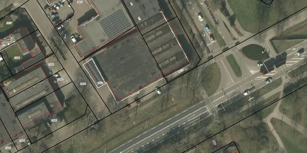 Hoogveldstraat 5 is gelegen op kadastraal perceel WEE01N2512. Deze kadastrale aanduiding is uniek en wordt gebruikt door het Kadaster om eigendomsrechten en andere zakelijke rechten vast te leggen. Het perceel maakt onderdeel uit van de kadastrale gemeente Weert.