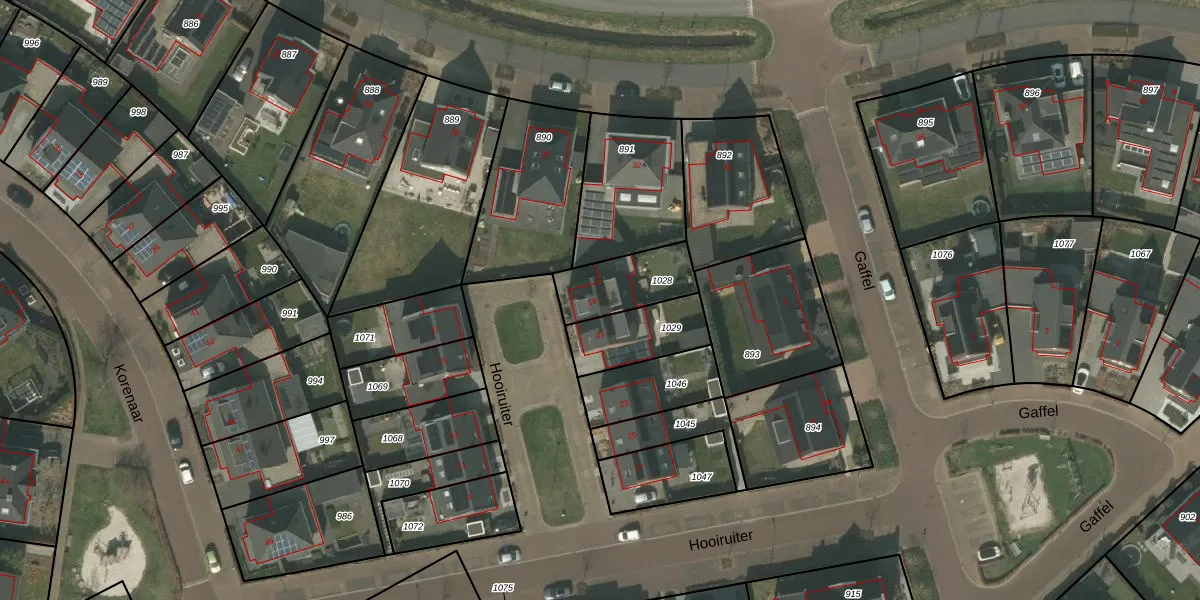 Het perceel waarop Hooiruiter 19 staat heeft een oppervlakte van 205 m². Dit is een middelgroot perceel. De perceeloppervlakte wordt geregistreerd door het Kadaster. Gedetailleerde informatie over de maten van dit perceel kunt u vinden in het rapport Kadastrale kaart met maatvoering van Hooiruiter 19.