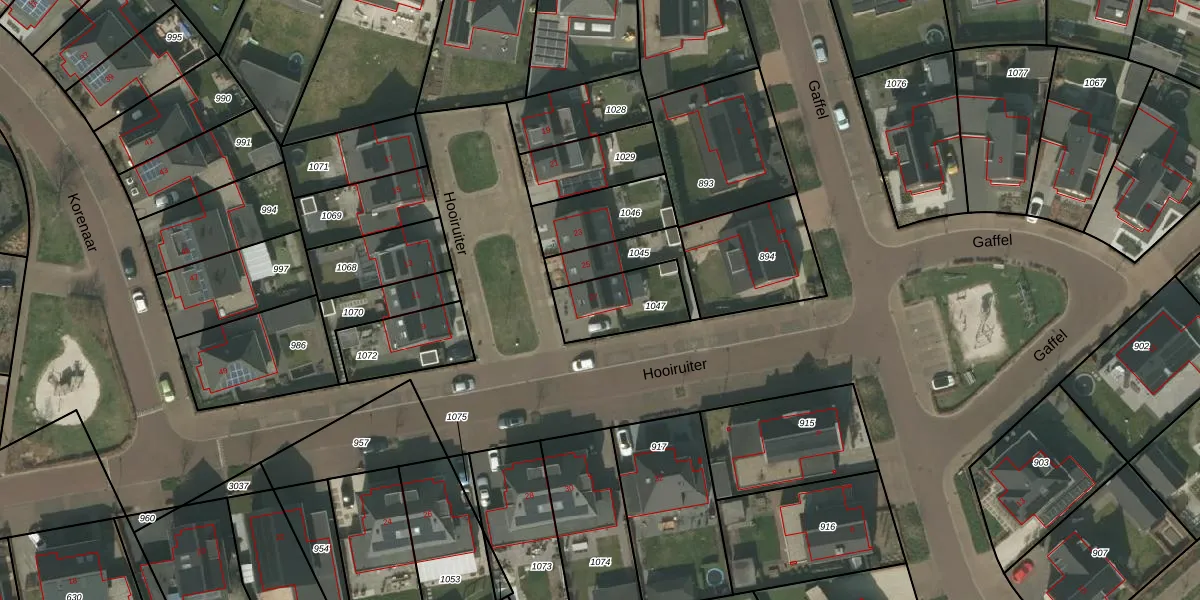 Het perceel waarop Hooiruiter 27 staat heeft een oppervlakte van 210 m². Dit is een middelgroot perceel. De perceeloppervlakte wordt geregistreerd door het Kadaster. Gedetailleerde informatie over de maten van dit perceel kunt u vinden in het rapport Kadastrale kaart met maatvoering van Hooiruiter 27.