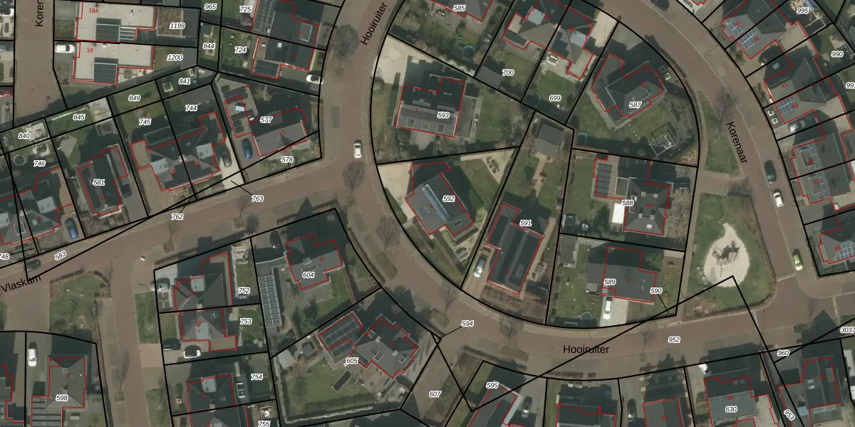 Het perceel waarop Hooiruiter 3 staat heeft een oppervlakte van 609 m². Dit is een groot perceel. De perceeloppervlakte wordt geregistreerd door het Kadaster. Gedetailleerde informatie over de maten van dit perceel kunt u vinden in het rapport Kadastrale kaart met maatvoering van Hooiruiter 3.