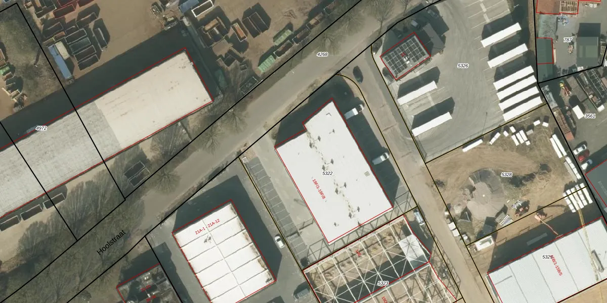 Het perceel waarop Hoolstraat 19-F-8 staat heeft een oppervlakte van 2127 m². Dit is een zeer groot perceel. De perceeloppervlakte wordt geregistreerd door het Kadaster. Gedetailleerde informatie over de maten van dit perceel kunt u vinden in het rapport Kadastrale kaart met maatvoering van Hoolstraat 19-F-8.