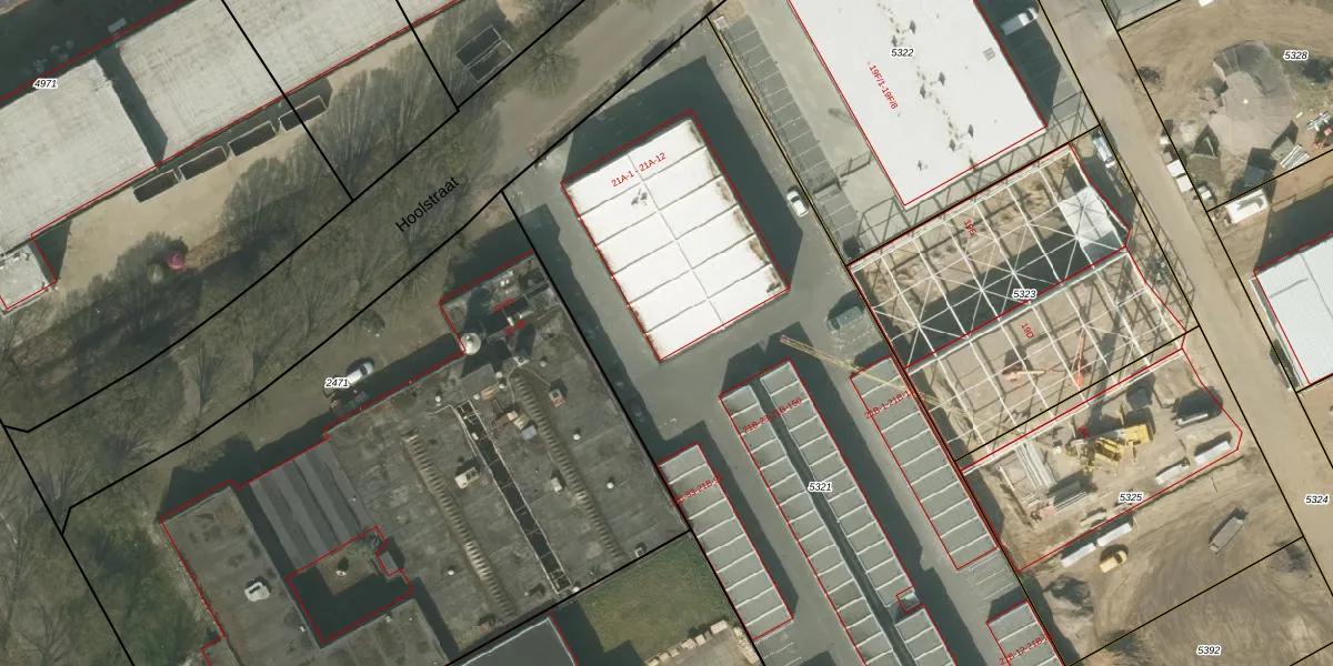 Het perceel waarop Hoolstraat 21-A-7 staat heeft een oppervlakte van 5248 m². Dit is een zeer groot perceel. De perceeloppervlakte wordt geregistreerd door het Kadaster. Gedetailleerde informatie over de maten van dit perceel kunt u vinden in het rapport Kadastrale kaart met maatvoering van Hoolstraat 21-A-7.