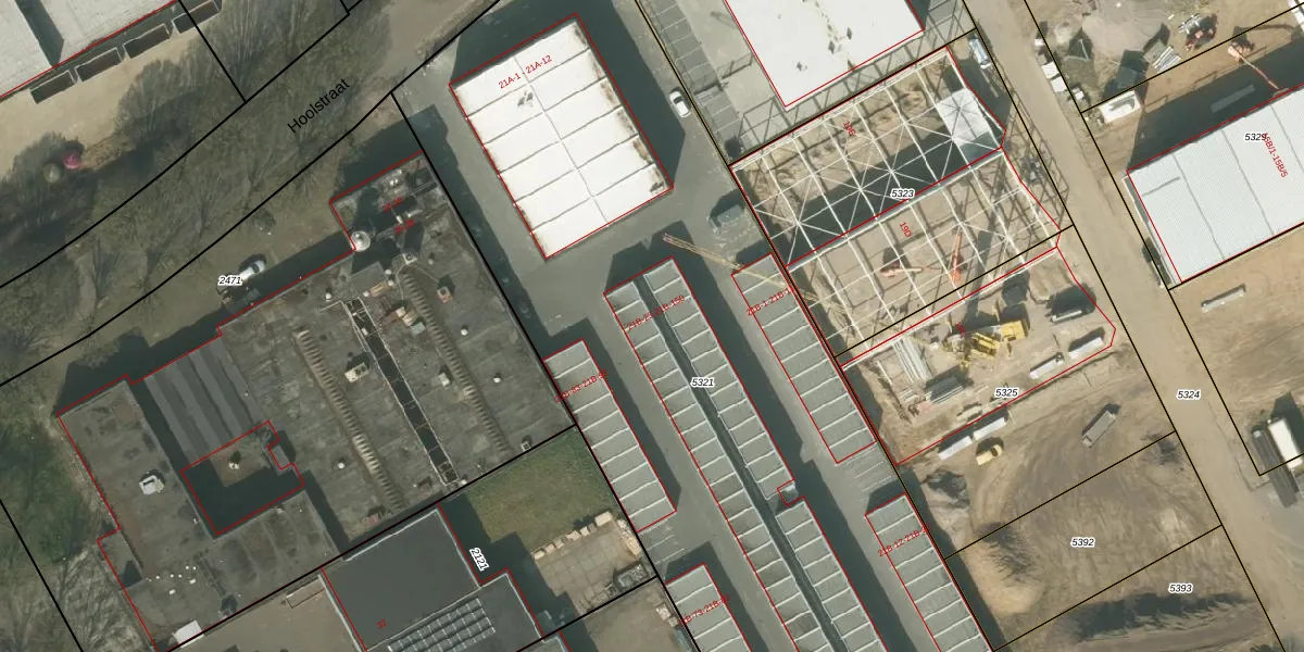 Het perceel waarop Hoolstraat 21-B-122 staat heeft een oppervlakte van 5248 m². Dit is een zeer groot perceel. De perceeloppervlakte wordt geregistreerd door het Kadaster. Gedetailleerde informatie over de maten van dit perceel kunt u vinden in het rapport Kadastrale kaart met maatvoering van Hoolstraat 21-B-122.