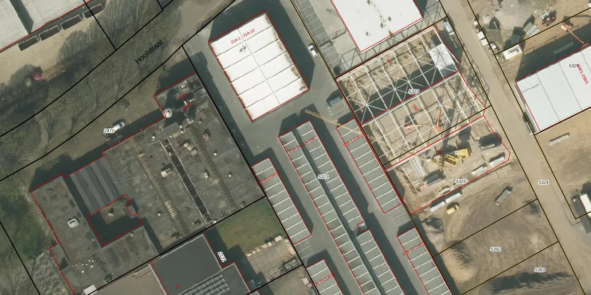 Het perceel waarop Hoolstraat 21-B-123 staat heeft een oppervlakte van 5248 m². Dit is een zeer groot perceel. De perceeloppervlakte wordt geregistreerd door het Kadaster. Gedetailleerde informatie over de maten van dit perceel kunt u vinden in het rapport Kadastrale kaart met maatvoering van Hoolstraat 21-B-123.
