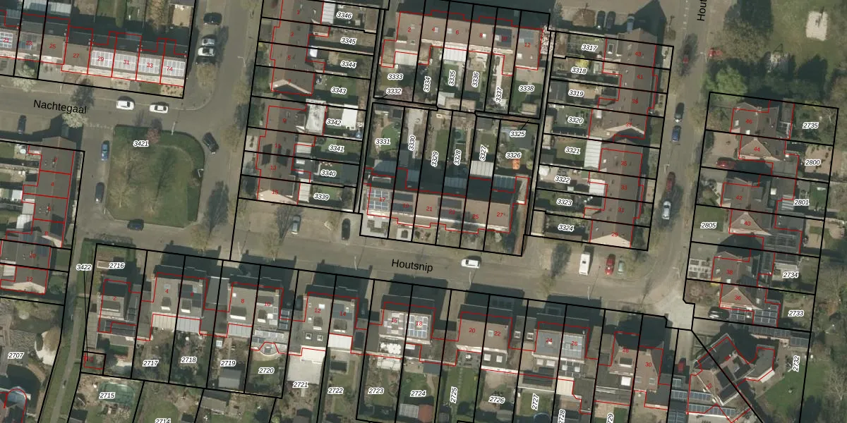 Gebruik de zoekbalk of klik op een perceel voor informatie over de adressen binnen dit perceel.