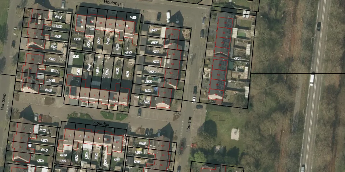 Houtsnip 49 is gelegen op kadastraal perceel WEE01F2791. Deze kadastrale aanduiding is uniek en wordt gebruikt door het Kadaster om eigendomsrechten en andere zakelijke rechten vast te leggen. Het perceel maakt onderdeel uit van de kadastrale gemeente Weert.