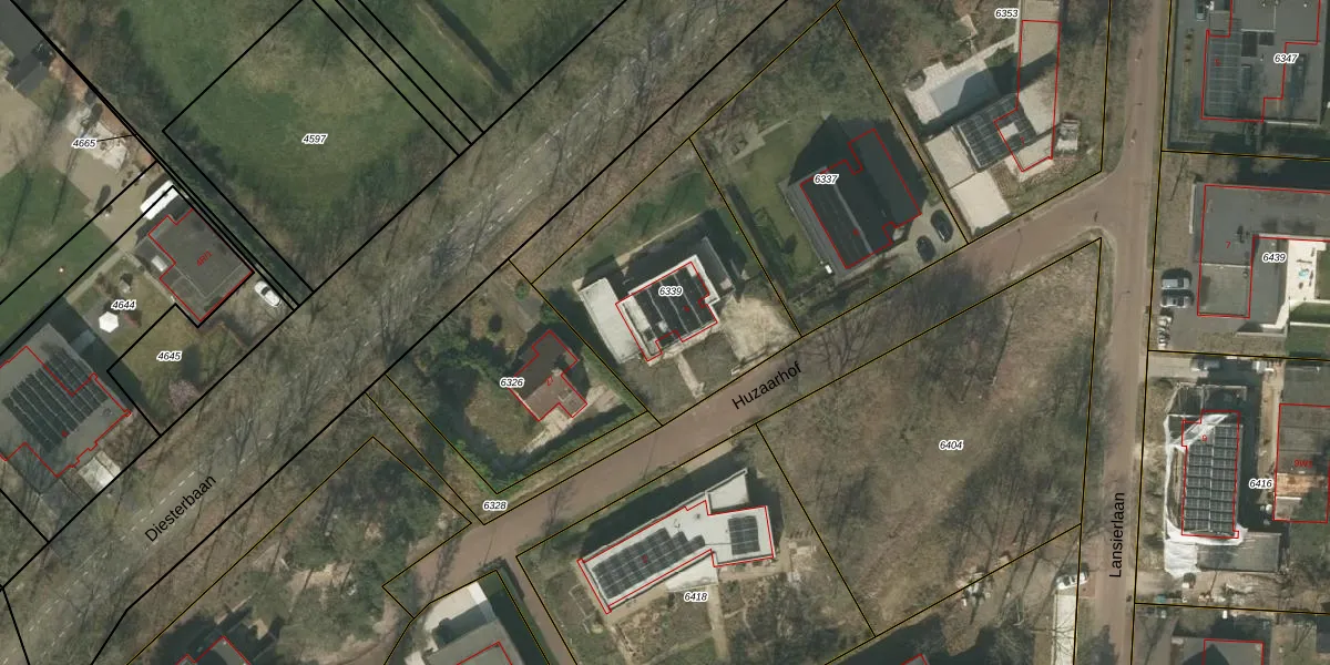 Het perceel waarop Huzaarhof 5 staat heeft een oppervlakte van 899 m². Dit is een groot perceel. De perceeloppervlakte wordt geregistreerd door het Kadaster. Gedetailleerde informatie over de maten van dit perceel kunt u vinden in het rapport Kadastrale kaart met maatvoering van Huzaarhof 5.