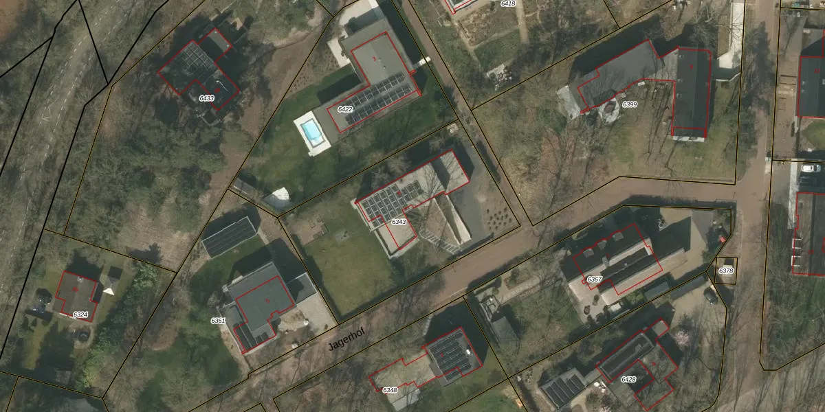 Het perceel waarop Jagerhof 6 staat heeft een oppervlakte van 1503 m². Dit is een zeer groot perceel. De perceeloppervlakte wordt geregistreerd door het Kadaster. Gedetailleerde informatie over de maten van dit perceel kunt u vinden in het rapport Kadastrale kaart met maatvoering van Jagerhof 6.