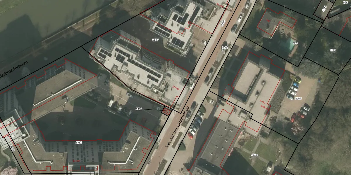 Het perceel waarop Jan van der Croonstraat 13 staat heeft een oppervlakte van 3280 m². Dit is een zeer groot perceel. De perceeloppervlakte wordt geregistreerd door het Kadaster. Gedetailleerde informatie over de maten van dit perceel kunt u vinden in het rapport Kadastrale kaart met maatvoering van Jan van der Croonstraat 13.