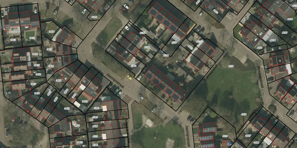 Het perceel waarop Jasmijnstraat 26 staat heeft een oppervlakte van 2044 m². Dit is een zeer groot perceel. De perceeloppervlakte wordt geregistreerd door het Kadaster. Gedetailleerde informatie over de maten van dit perceel kunt u vinden in het rapport Kadastrale kaart met maatvoering van Jasmijnstraat 26.