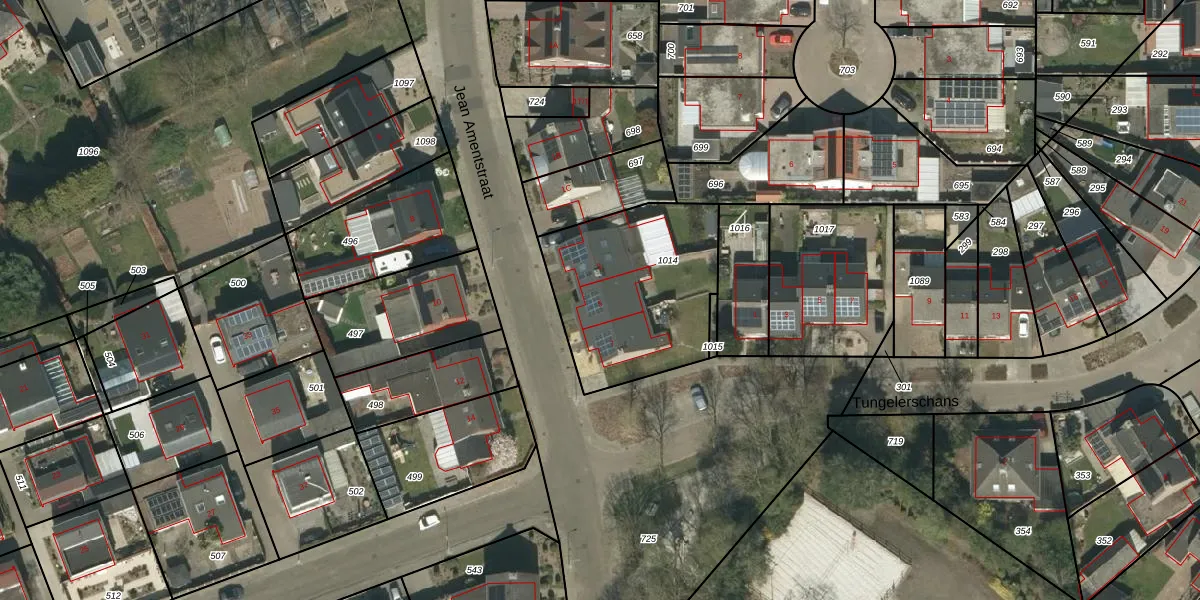Het perceel waarop Jean Amentstraat 5 staat heeft een oppervlakte van 726 m². Dit is een groot perceel. De perceeloppervlakte wordt geregistreerd door het Kadaster. Gedetailleerde informatie over de maten van dit perceel kunt u vinden in het rapport Kadastrale kaart met maatvoering van Jean Amentstraat 5.
