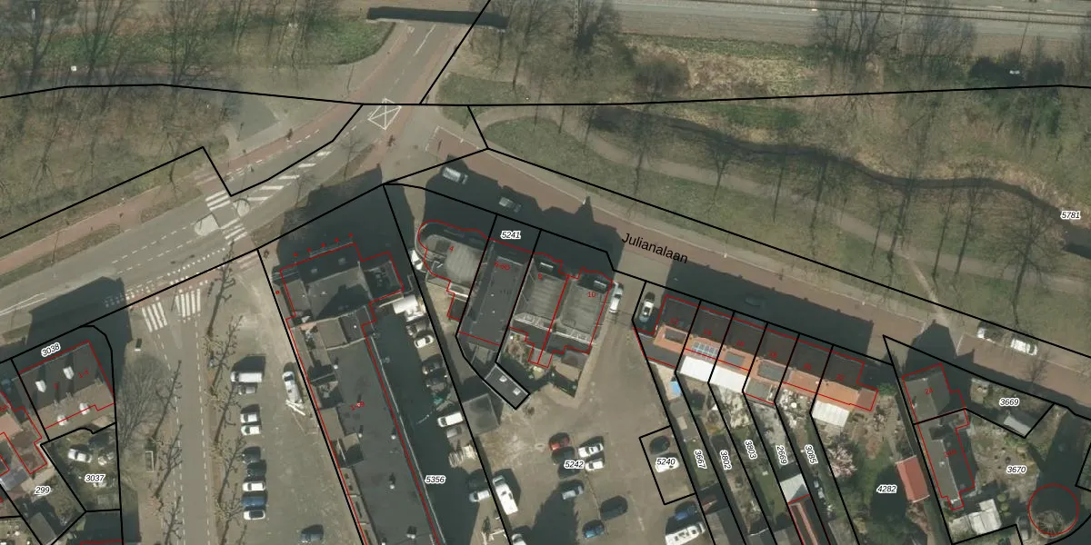 Het perceel waarop Julianalaan 8 staat heeft een oppervlakte van 2217 m². Dit is een zeer groot perceel. De perceeloppervlakte wordt geregistreerd door het Kadaster. Gedetailleerde informatie over de maten van dit perceel kunt u vinden in het rapport Kadastrale kaart met maatvoering van Julianalaan 8.