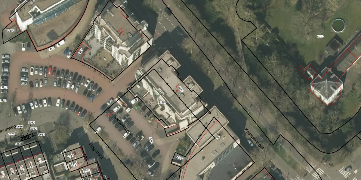 Het perceel waarop Kasteelsingel 3 staat heeft een oppervlakte van 320 m². Dit is een groot perceel. De perceeloppervlakte wordt geregistreerd door het Kadaster. Gedetailleerde informatie over de maten van dit perceel kunt u vinden in het rapport Kadastrale kaart met maatvoering van Kasteelsingel 3.