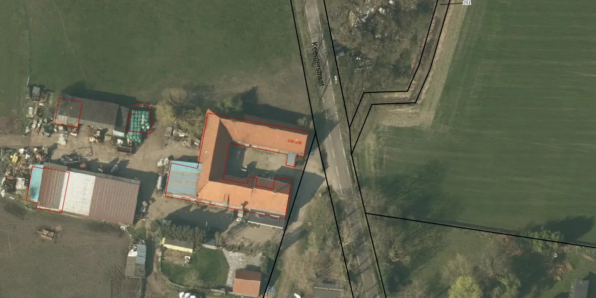 Het perceel waarop Keenterstraat 106 staat heeft een oppervlakte van 10,6 ha. Dit is een zeer groot perceel. De perceeloppervlakte wordt geregistreerd door het Kadaster. Gedetailleerde informatie over de maten van dit perceel kunt u vinden in het rapport Kadastrale kaart met maatvoering van Keenterstraat 106.