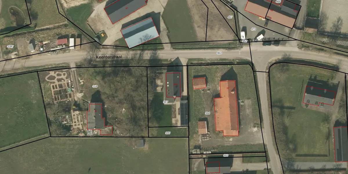 Keenterstraat 20-A is gelegen op kadastraal perceel WEE01AE947. Deze kadastrale aanduiding is uniek en wordt gebruikt door het Kadaster om eigendomsrechten en andere zakelijke rechten vast te leggen. Het perceel maakt onderdeel uit van de kadastrale gemeente Weert.