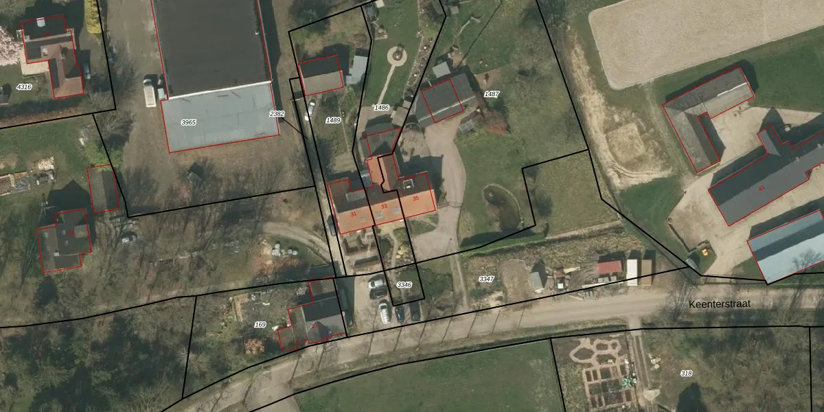 Keenterstraat 35 is gelegen op kadastraal perceel WEE01R1487. Deze kadastrale aanduiding is uniek en wordt gebruikt door het Kadaster om eigendomsrechten en andere zakelijke rechten vast te leggen. Het perceel maakt onderdeel uit van de kadastrale gemeente Weert.