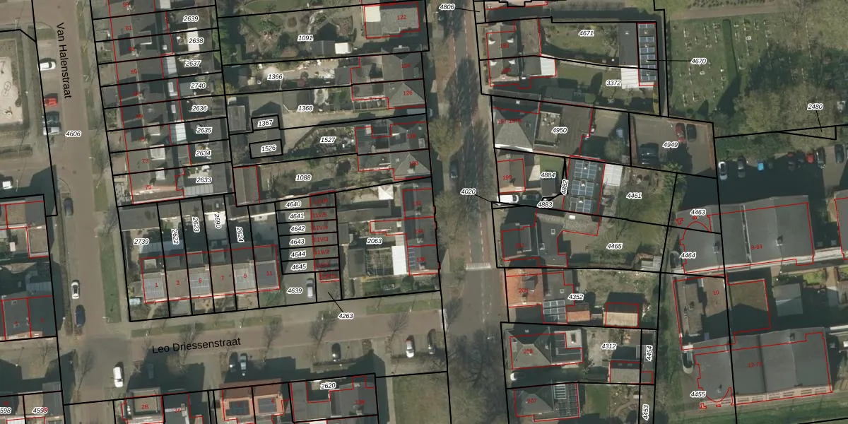 Het adres ligt op het perceel WEE01-R-2063, dat zich in de kadastrale gemeente Weert bevindt. De gemiddelde perceelgrootte in Weert is 3764,43 m². Dit perceel is kleiner: de perceeloppervlakte bedraagt 610 m². De grootste perceeloppervlakte in de kadastrale gemeente is 3,08 km². De kleinste oppervlakte bedraagt 0 m². Er zijn 3 adressen aanwezig op het perceel. De huidige grenzen van het perceel zijn digitaal in de Basisregistratie Kadaster (BRK) geregistreerd op 24-11-2009.