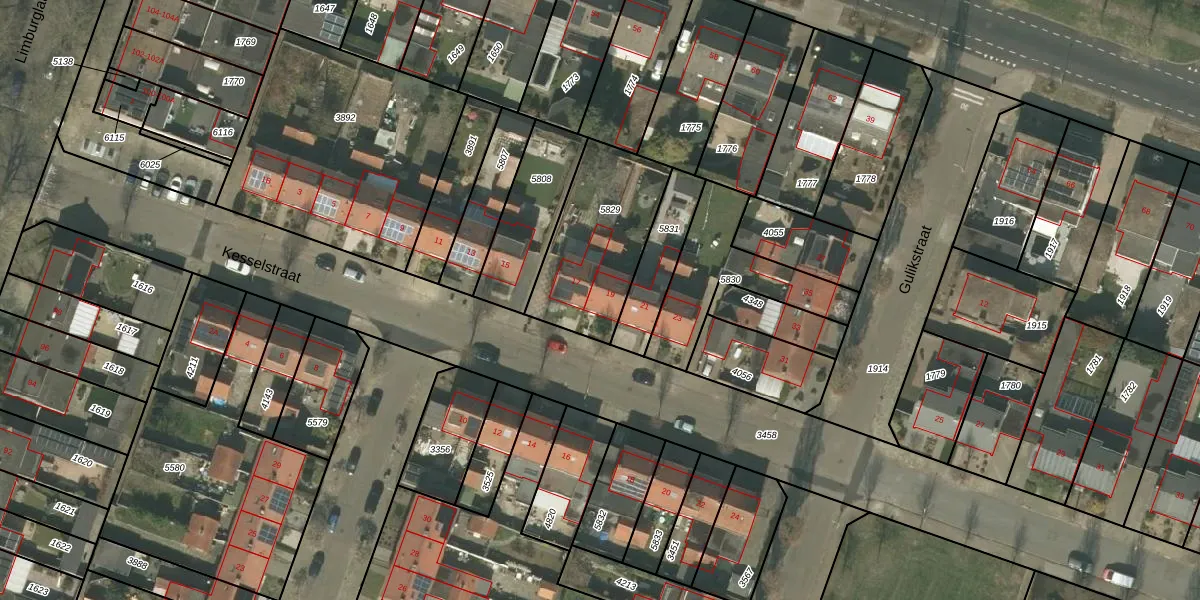 Het perceel waarop Kesselstraat 19 staat heeft een oppervlakte van 475 m². Dit is een groot perceel. De perceeloppervlakte wordt geregistreerd door het Kadaster. Gedetailleerde informatie over de maten van dit perceel kunt u vinden in het rapport Kadastrale kaart met maatvoering van Kesselstraat 19.