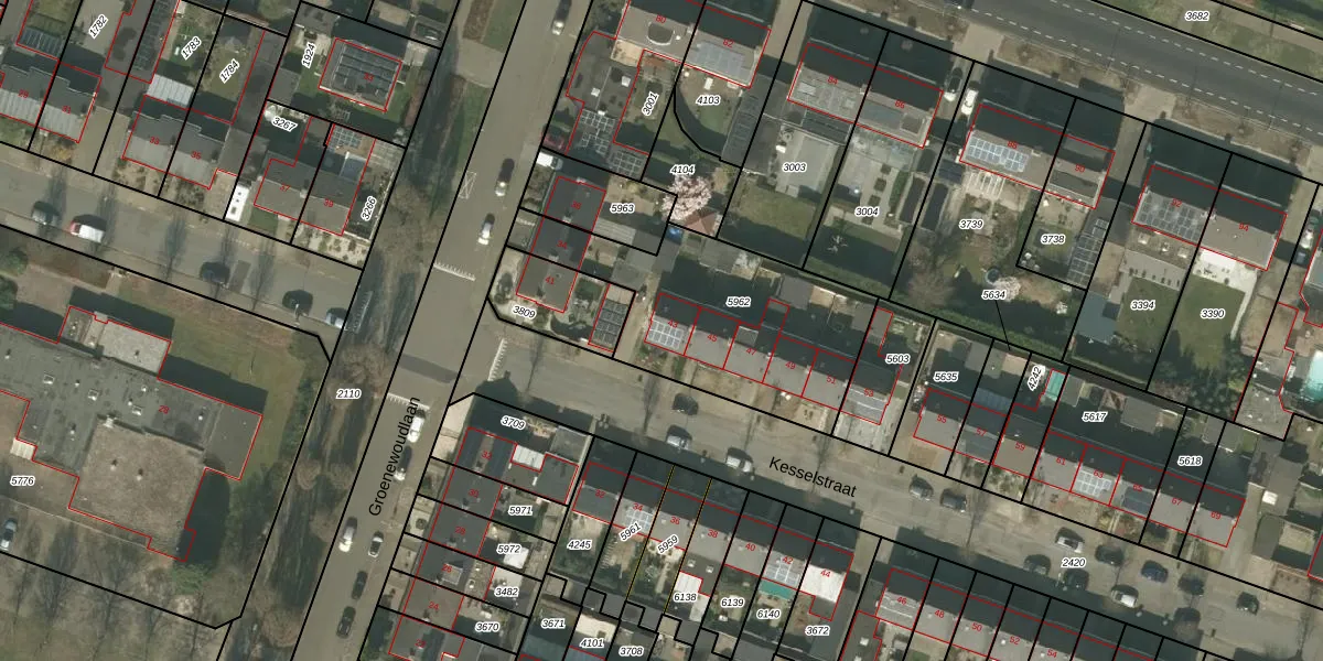 Het perceel waarop Kesselstraat 43 staat heeft een oppervlakte van 894 m². Dit is een groot perceel. De perceeloppervlakte wordt geregistreerd door het Kadaster. Gedetailleerde informatie over de maten van dit perceel kunt u vinden in het rapport Kadastrale kaart met maatvoering van Kesselstraat 43.