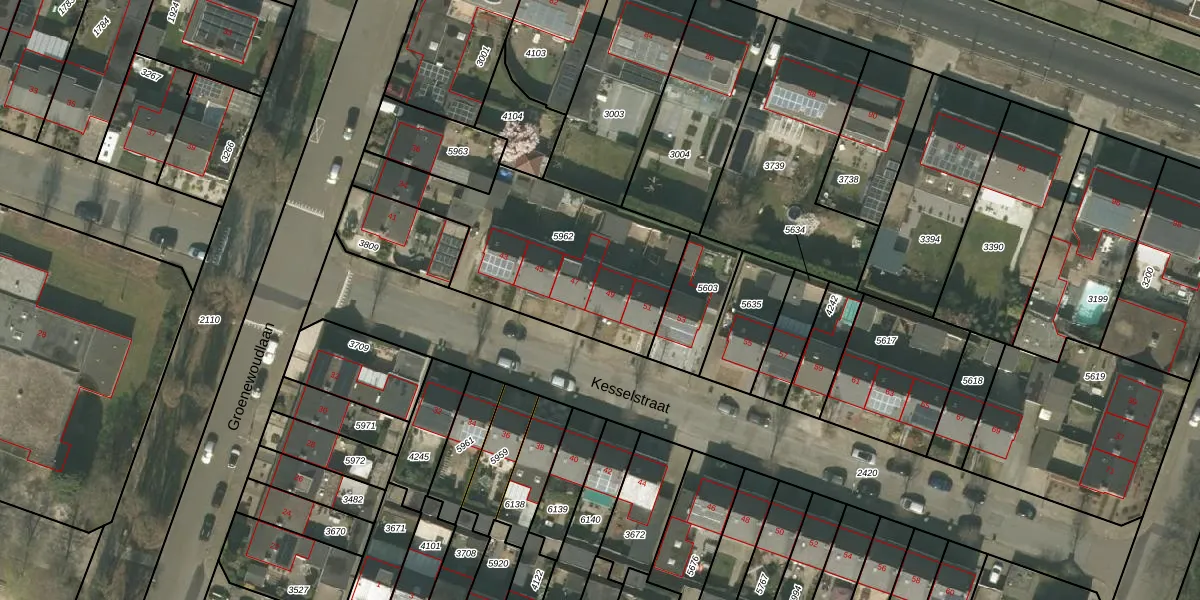 Het perceel waarop Kesselstraat 49 staat heeft een oppervlakte van 894 m². Dit is een groot perceel. De perceeloppervlakte wordt geregistreerd door het Kadaster. Gedetailleerde informatie over de maten van dit perceel kunt u vinden in het rapport Kadastrale kaart met maatvoering van Kesselstraat 49.