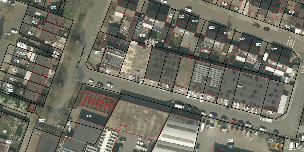 Gebruik de zoekbalk of klik op een perceel voor informatie over de adressen binnen dit perceel.