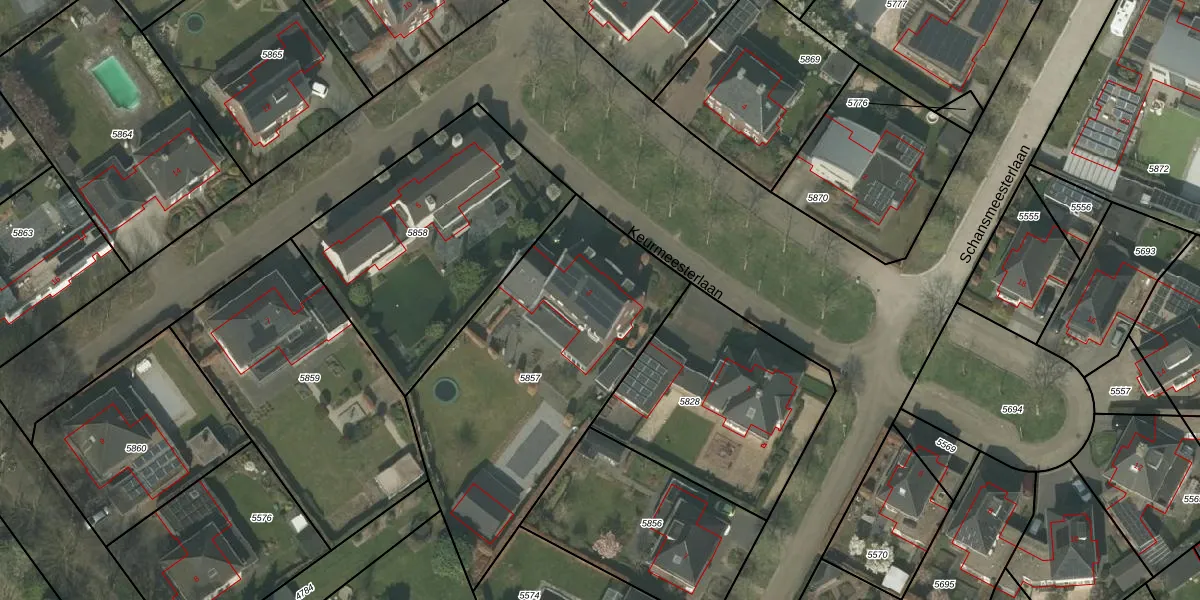 Het perceel waarop Keurmeesterlaan 3 staat heeft een oppervlakte van 1426 m². Dit is een zeer groot perceel. De perceeloppervlakte wordt geregistreerd door het Kadaster. Gedetailleerde informatie over de maten van dit perceel kunt u vinden in het rapport Kadastrale kaart met maatvoering van Keurmeesterlaan 3.