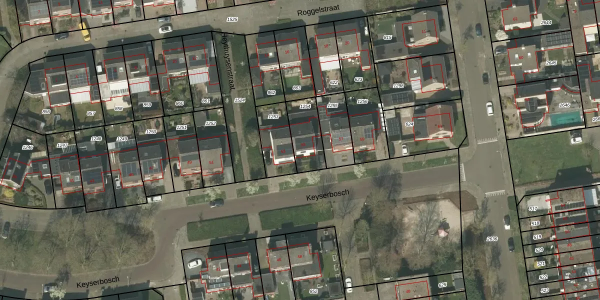 Het perceel waarop Keyserbosch 55 staat heeft een oppervlakte van 243 m². Dit is een middelgroot perceel. De perceeloppervlakte wordt geregistreerd door het Kadaster. Gedetailleerde informatie over de maten van dit perceel kunt u vinden in het rapport Kadastrale kaart met maatvoering van Keyserbosch 55.