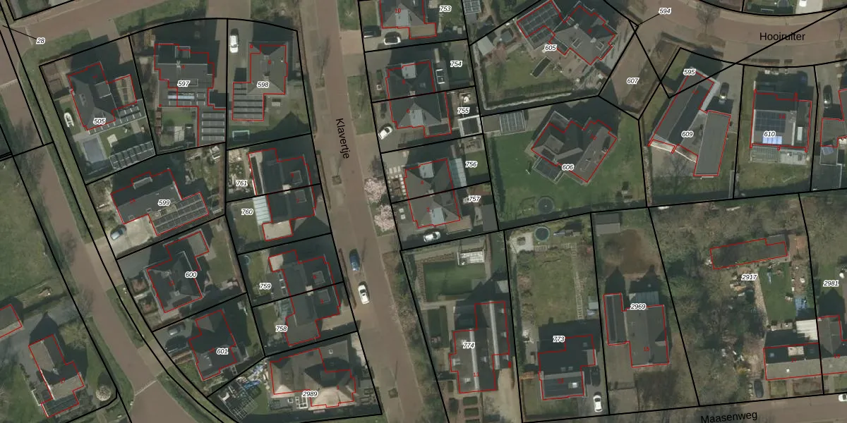 Klavertje 2 is gelegen op kadastraal perceel WEE01W757. Deze kadastrale aanduiding is uniek en wordt gebruikt door het Kadaster om eigendomsrechten en andere zakelijke rechten vast te leggen. Het perceel maakt onderdeel uit van de kadastrale gemeente Weert.