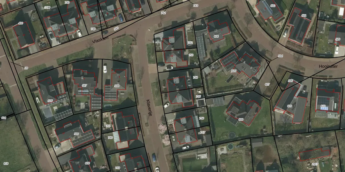 Gebruik de zoekbalk of klik op een perceel voor informatie over de adressen binnen dit perceel.