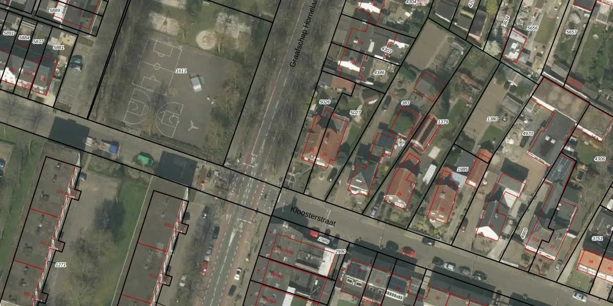 Het perceel waarop Kloosterstraat 23 staat heeft een oppervlakte van 326 m². Dit is een groot perceel. De perceeloppervlakte wordt geregistreerd door het Kadaster. Gedetailleerde informatie over de maten van dit perceel kunt u vinden in het rapport Kadastrale kaart met maatvoering van Kloosterstraat 23.