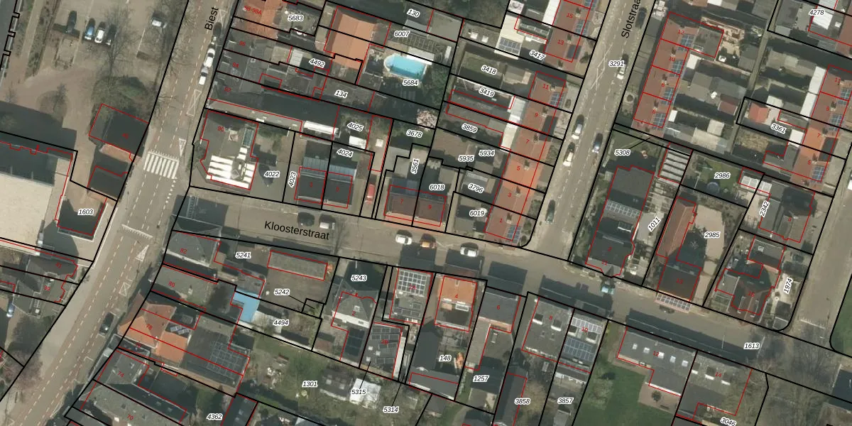 Kloosterstraat 9 is gelegen op kadastraal perceel WEE01S6018. Deze kadastrale aanduiding is uniek en wordt gebruikt door het Kadaster om eigendomsrechten en andere zakelijke rechten vast te leggen. Het perceel maakt onderdeel uit van de kadastrale gemeente Weert.